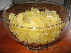 Сироп сливаем, оставляем только отваренные арбузные корки. Их выкладываем на вощеную бумагу, вялим часов 8 при комнатной температуре. После этого подогреваем корки в духовке, а затем сразу кидаем в сахар, перемешиваем и вновь выкладываем сушиться. В результате кусочки равномерно покроются сахарной корочкой. Через некоторое время цукаты будут окончательно готовы.