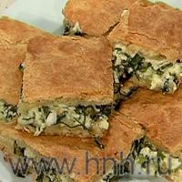 Для начинки натрите на тёрке брынзу и масло, всю промытую зелень мелко режете и смешивайте с брынзой. Начинки получается много, кажется, что слишком много, но это не так. Уйдёт вся.