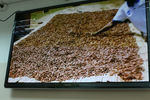Фотографировать в цехах фабрики разрешения не было, так что фото - в основном монитора с кадрами из демонстрируемого фильма, стойки с продукцией, а также самого конца экскурсии, второго дегустационного стола.