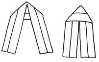 Эту петлю изготовить очень просто. Ее можно сделать из тесьмы или ткани. Вырезают полоску ткани по долевой или поперечной нити, учитывая нужную длину и припуски на швы, складывают ее пополам лицевой стороной внутрь и сострачивают. Затем выворачивают на лицевую сторону и заглаживают таким образом, чтобы шов оказался точно посередине петли. Полученную полоску складывают «домиком», еще раз гладят и вручную подшивают залом на петле («крышу»). Петля готова.
