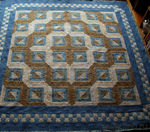 Геометрическое лоскутное шитьё, бежево-голубые тона.