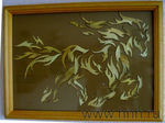 кони на водопое(30х40)соломка, объемно-плоскостная аппликация