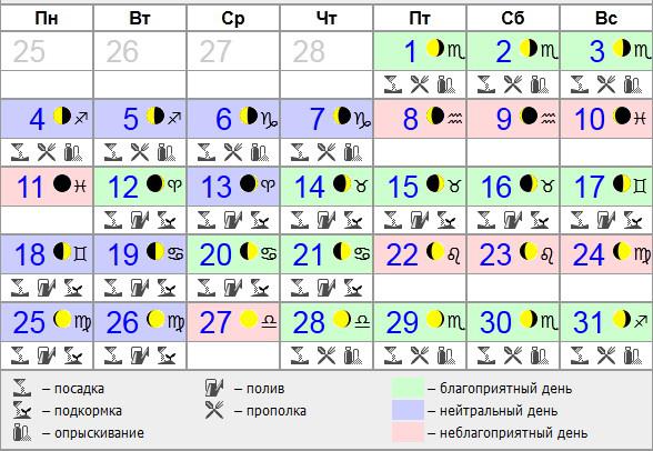 Благоприятные дни: 4, 5, 6, 8, 9, 13, 14, 15, 21, 22, 23, 24, 31.