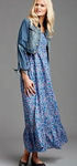 Платье с застроченными складками на плечах, кокетка сзади. Шнурок для регулировки талии сзади. Рукава 3/4, оборки на подоле. Длина около 94 см для размера 38. 100% хлопок с небольшим эффектом потертости. Стирка при 40° С.